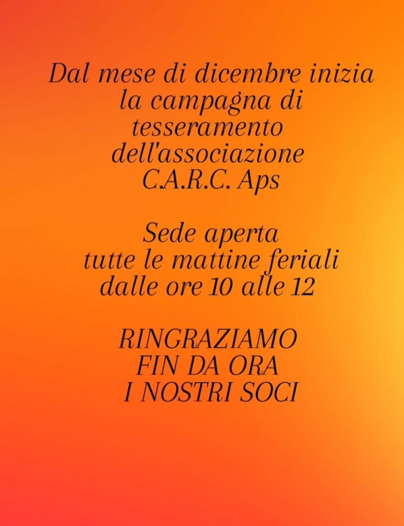 Dal 1° dicembre ha preso il via la campagna di tesseramento dell’Associazione CARC Aps.